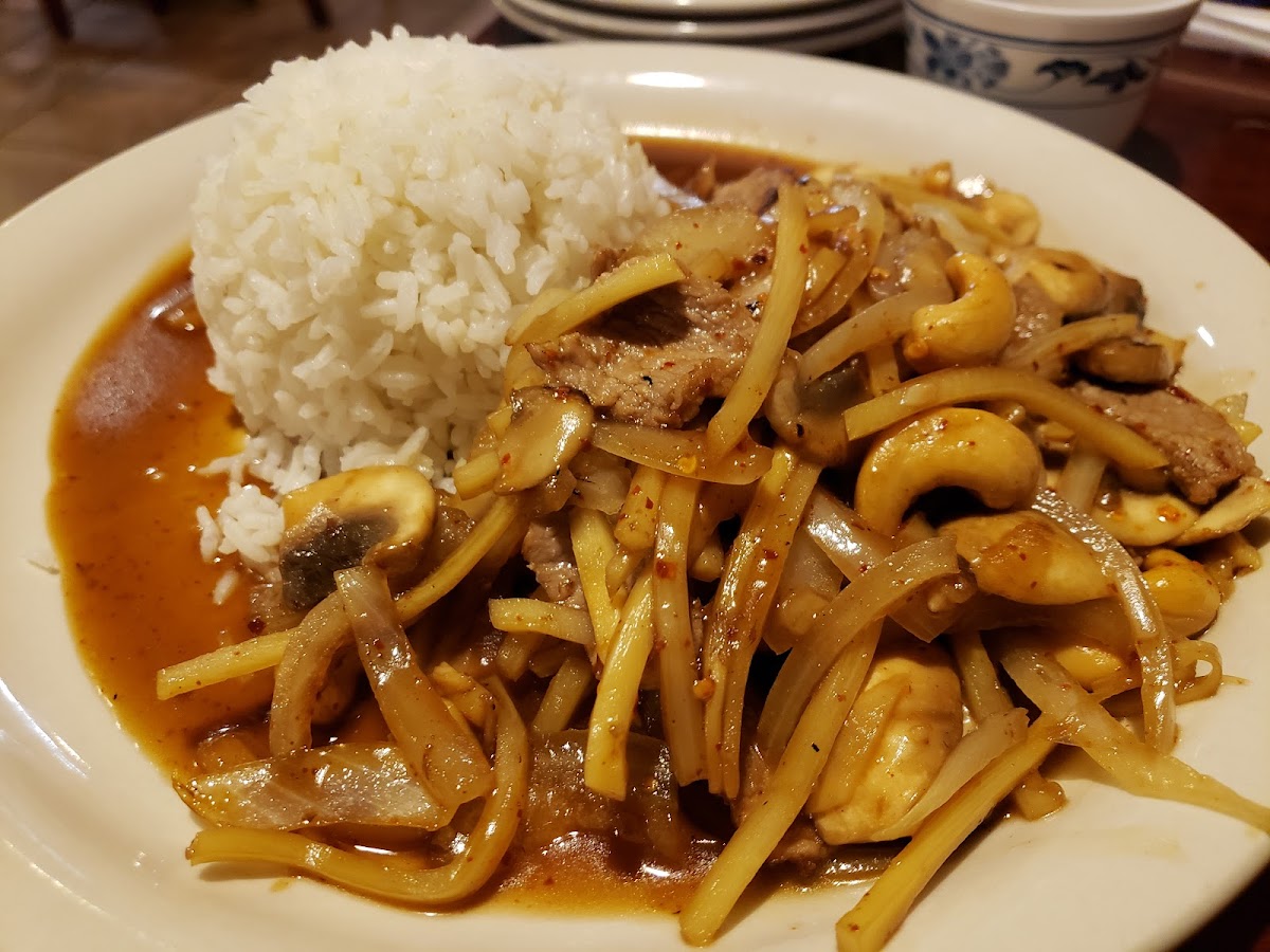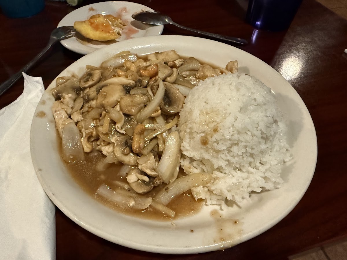 I had the Cashew Chicken& white rice it was very good! I ordered take out,but they had a good sized dining area as well.